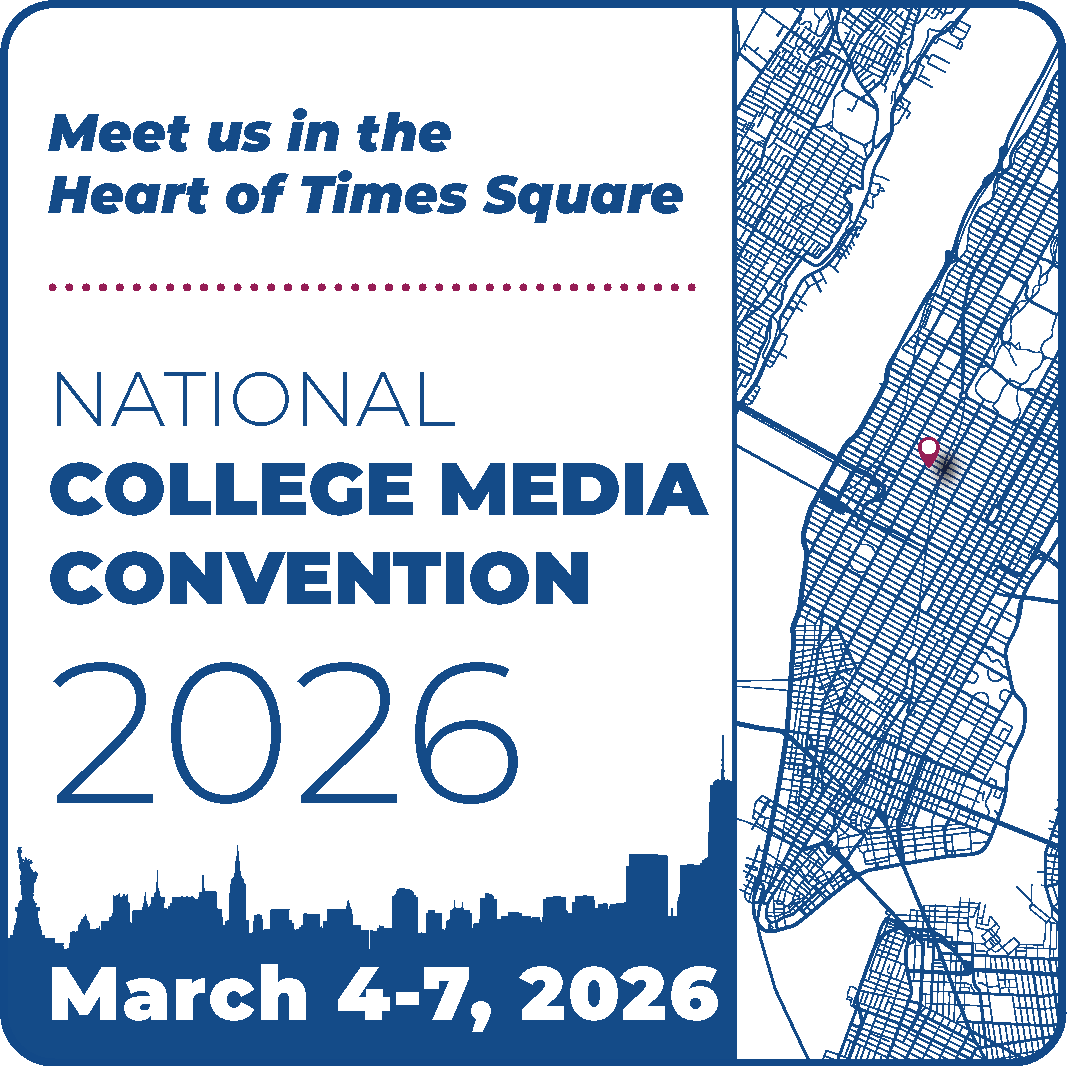 Join college media advisers and student journalists from across the country for three days of hands-on training, fresh ideas and meaningful connections. The convention offers targeted tracks for advisers and newsroom-ready sessions across reporting, editing, design, business operations, media law and more. With Times Square as your campus, you’ll be steps from leading media outlets—perfect for tours, off-site visits and real-world inspiration. Don’t miss CMA’s final New York City convention for the foreseeable future. Read More on the Convention Website |